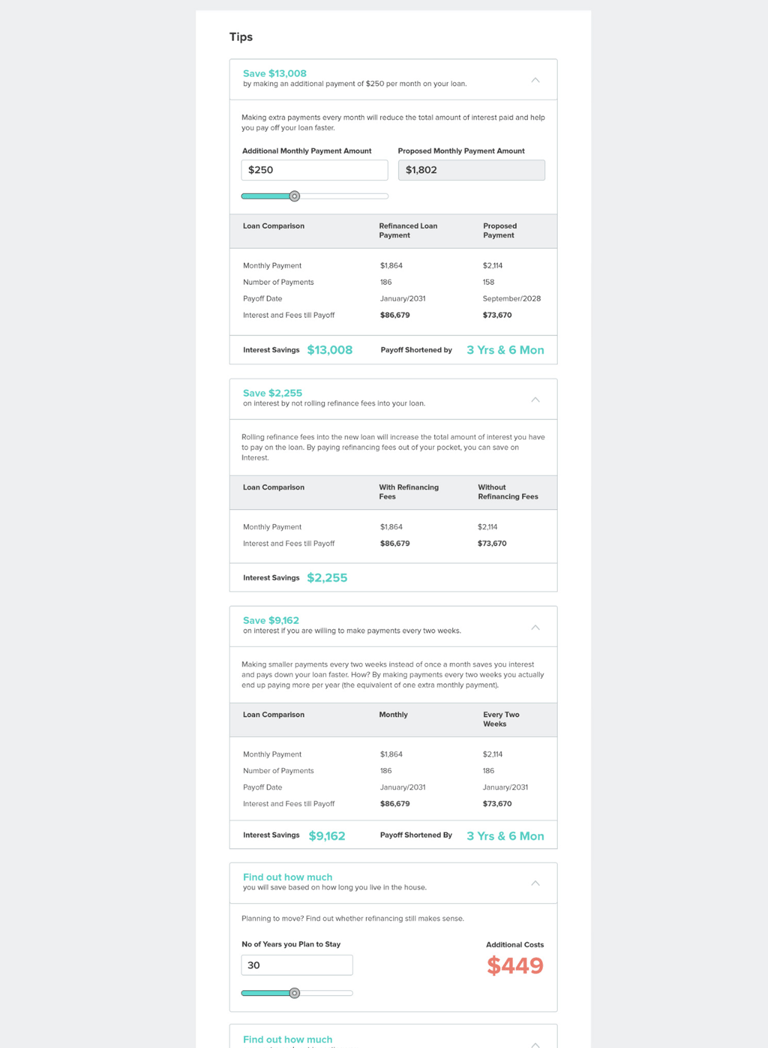 I led design across multiple financial calculators used throughout acquisition and engagement journeys.