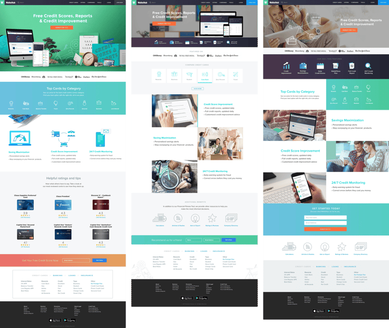 I worked on improving high-traffic entry web-pages that introduced users to financial products and tools.